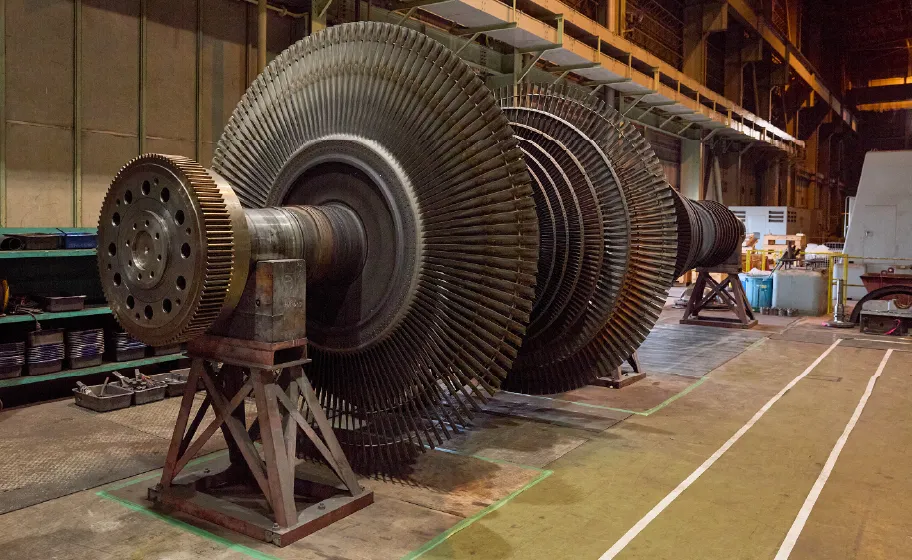 私たち日栄動力工業株式会社は、火力・原子力発電所において、発電所の中でも重要な設備であるタービン・発電機・各種回転機器の据付工事や保守点検・補修工事を手がけています。
