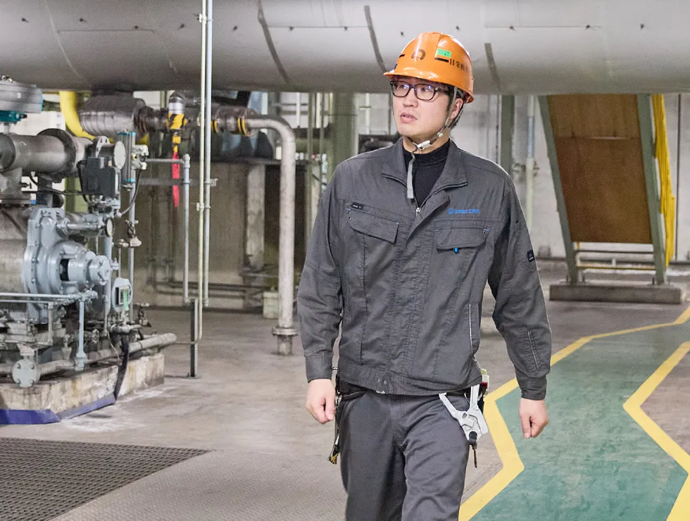 計装グループは発電設備の制御・監視機器の点検から小規模な配管工事やバルブのメンナンスなど、幅広い業務を担当します。計装というより機械に近い業務もありますが、タービンだけでなくボイラーにも制御装置がついているので、発電設備全体を見られることに、この仕事の面白さがあります。CADを使って設計するスキルも、入社してから学びました。自分で設計した小径配管が完成して、思った通りに据付られたときのうれしさは、格別なものがあります。